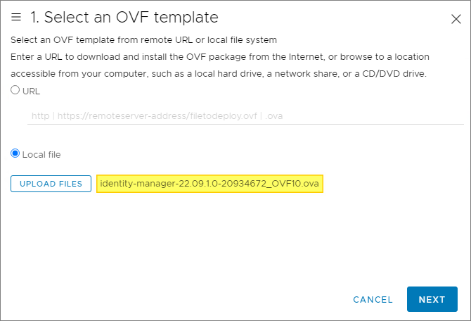 I start out by deploying the OVF Template in VMware vSphere. I browse and select the OVA file, Next…