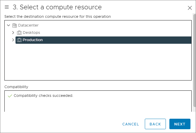 I select my cluster as Compute Resource, Next…