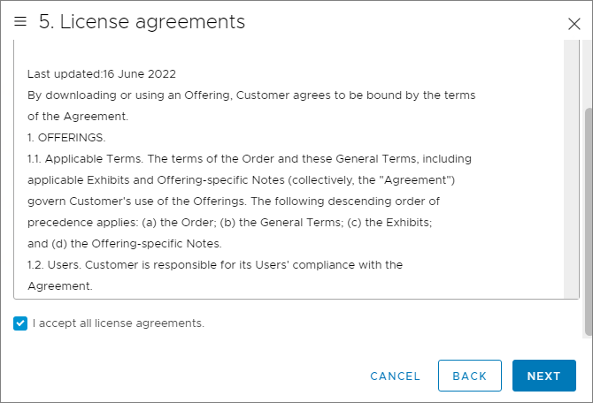 Accept the License agreements, Next…