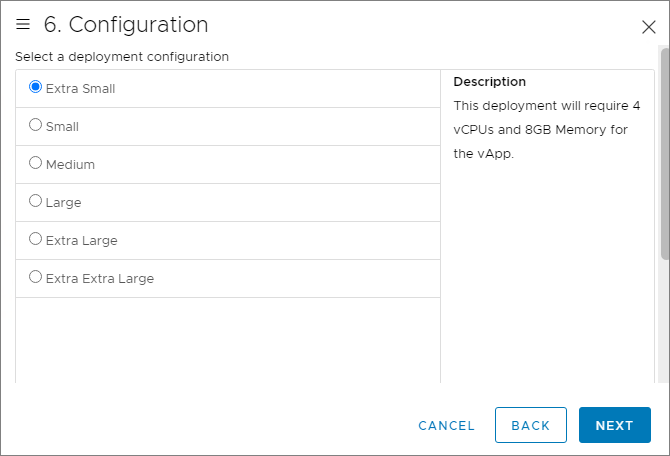 As this is a Lab set up, I will deploy an Extra Small configuration, Next…