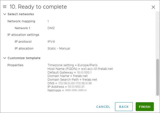 Everything looks satisfactory, so I click Finish to start the deployment.