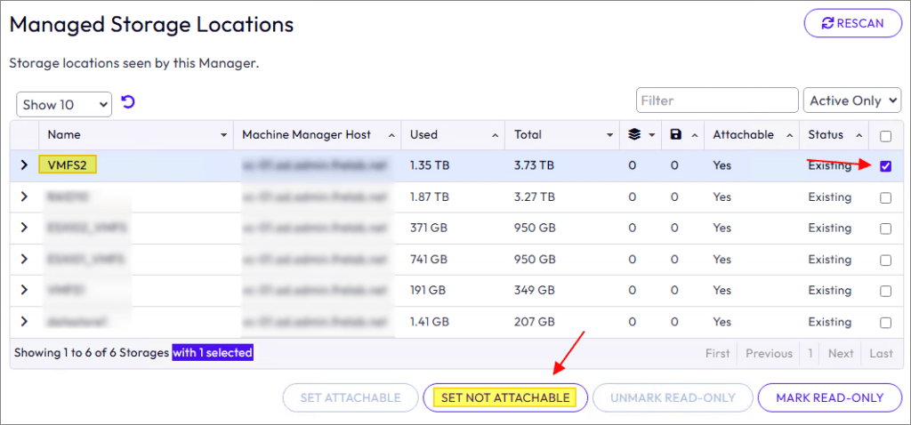 To make sure the users are forced to use applications from the new datastore, I set the old datastore as “Not Attachable”. Infrastructure > Storage > Manage Storage Locations