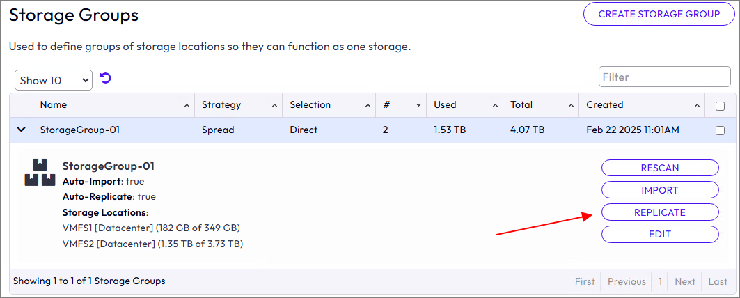 I begin by creating a new Storage Group to replicate existing App Volumes applications to the new datastore. Infrastructure > Storage Groups > Create Storage Group