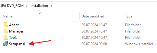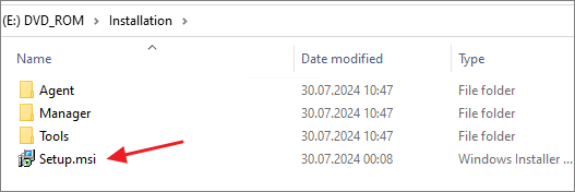I start out by powering on the VM, attach the ISO-file and launch the setup-file