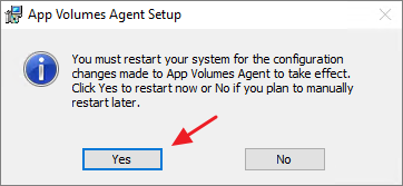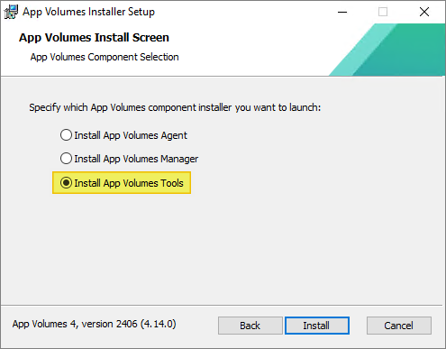 In the App Volumes Install Screen, I select “Install App Volumes Agent”, Install…