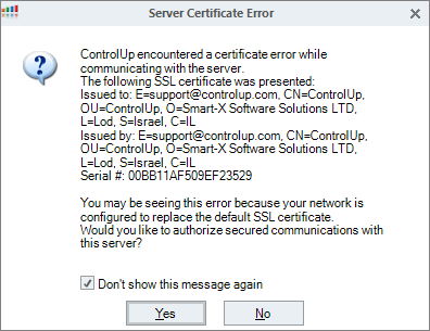 - For ControlUp On-Premises (COP) 8.6.5 and all later versions, you must install the DigiCert Trusted G4 (RSA default) certificate on each machine that you install the console. If you have the latest Windows updates installed, this certificate should already be installed on your machine(s). You can download the certificate here.