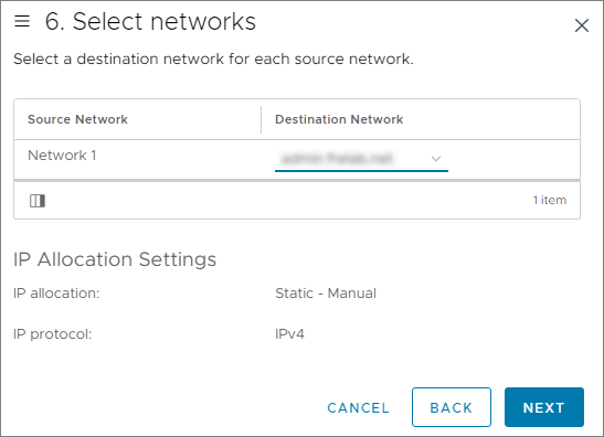 In the customize template wizard, I fill in all the necessary network-information, Next…