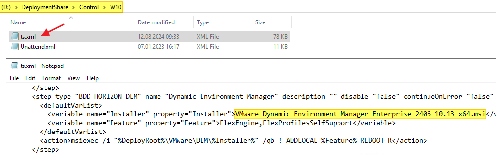 As my task sequence is based on the osot.xml template, I will also have to edit this file with the correct msi-file name. Once done, I update the Deployment Share before I run through the task sequence and push the new Windows image to my desktop pool