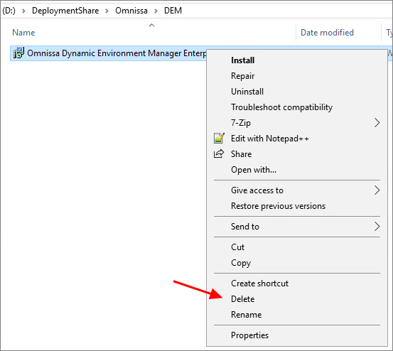 I close the Deployment Workbench MMC before I continue. To update the Dynamic Environment Manager Agent in the Deployment Share, I will first delete the existing agent.