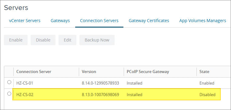I can now verify that all setting are correct before I re-enable my upgraded Connection Server