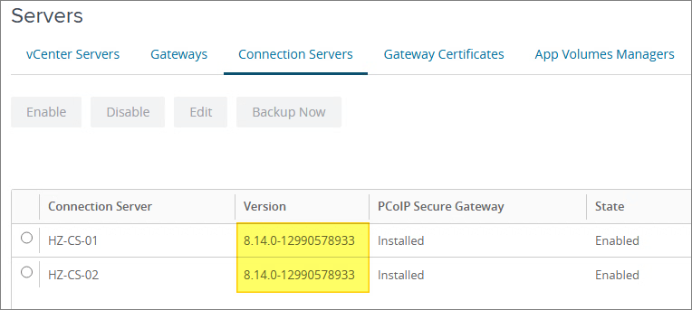 Once the installer has upgraded the Connection Server, I verify the installed version