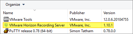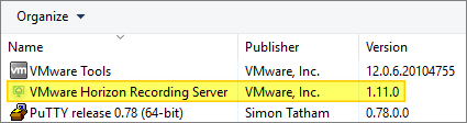 After the installation is done, I can verify in Control Panel the installed version and finish off by doing a reboot. Once rebooted I log back in and verify functionality in the VMware Horizon Desktop Recording server UI.
