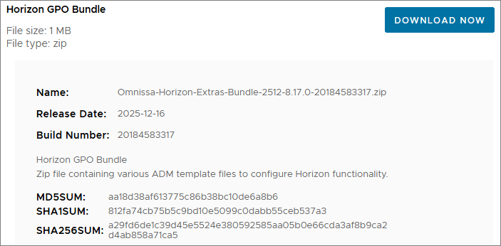 I start out by downloading the Horizon GPO Bundle from Omnissa Customer Connect
