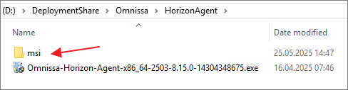 I close the Deployment Workbench MMC before I continue. To update the Horizon Agent in the Deployment Share I will first delete the existing agent and msi-folder from the Deployment Share.
