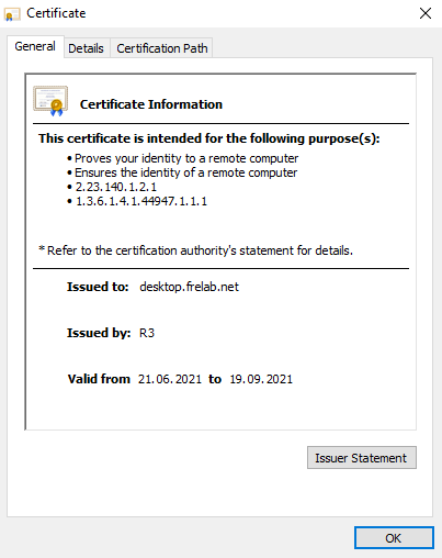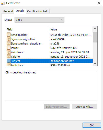 Welcome to my HAProxy Server series. In this sub-section I will show how I exported the certificates from my HAProxy server to be used with my VMware UAG’s. I will be exporting the certificates used on the HAProxy serving the desktop.frelab.net URL. My Letsencrypt certificate is as shown below: