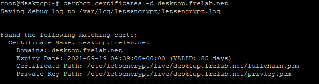 Once renewal is done, I merge the two files into my certificate “/etc/ssl/desktop.frelab.net/desktop.frelab.net.pem“