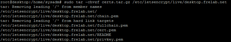 sudo tar -chvzf certs.tar.gz /etc/letsencrypt/live/desktop.frelab.net