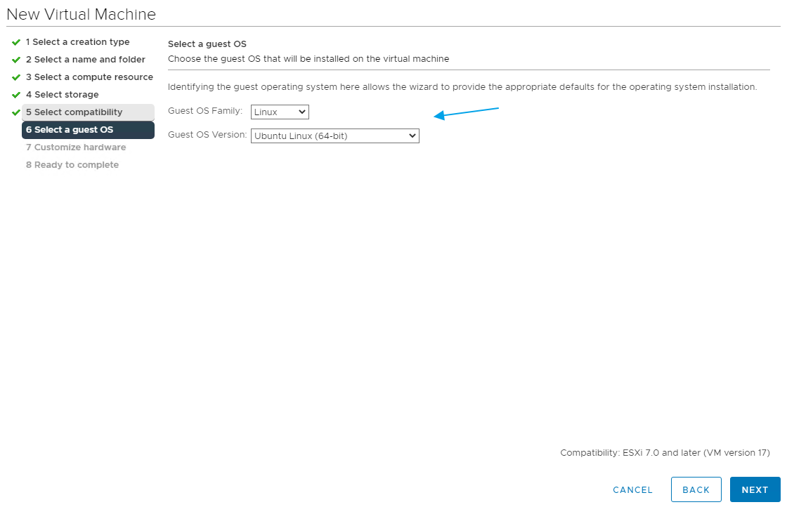 I select OS Family and Version, Next…