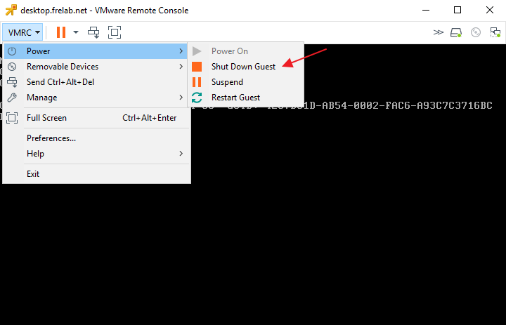 Next I shut down the virtual machine.