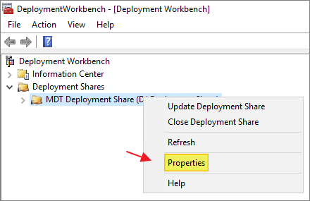 Before I continue, I need to adjust the properties on the Deployment Share.