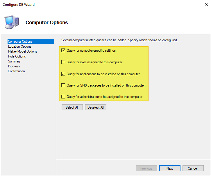 Deselect all Location Options, Next…