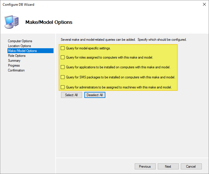 Deselect all Make/Model Options, Next…