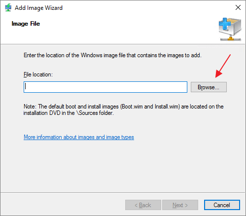 I open WDS MMC and start the “Add Boot image” wizard