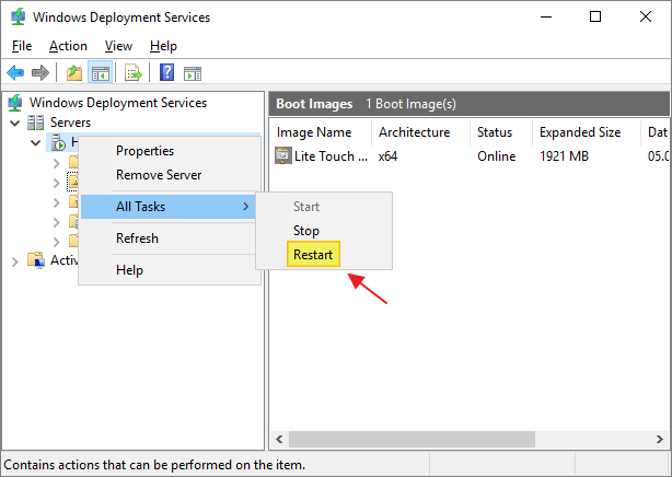 Finally restart the WDS service to activate the changes made above