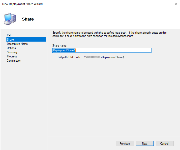 I supply a share name for the deployment share, Next…