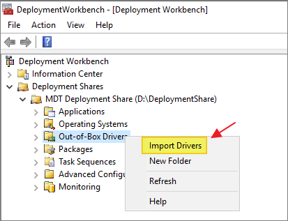 I will need a new Deployment Share for my setup. Inside Deployment Workbench, I select New Deployment Share
