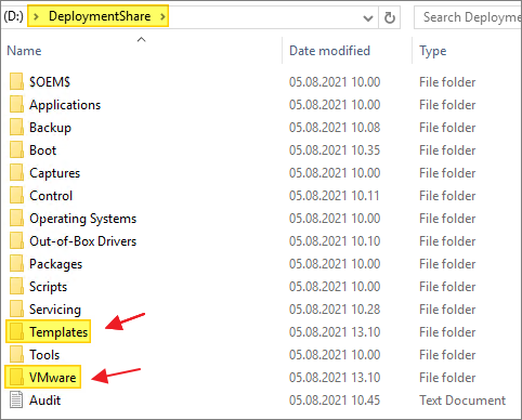 I download the VMware OSOT MDT Plugin from the VMware OS Optimization Tool website and unpack this in a temporary folder. I copy the “Templates” and “VMware” folder to the deployment share