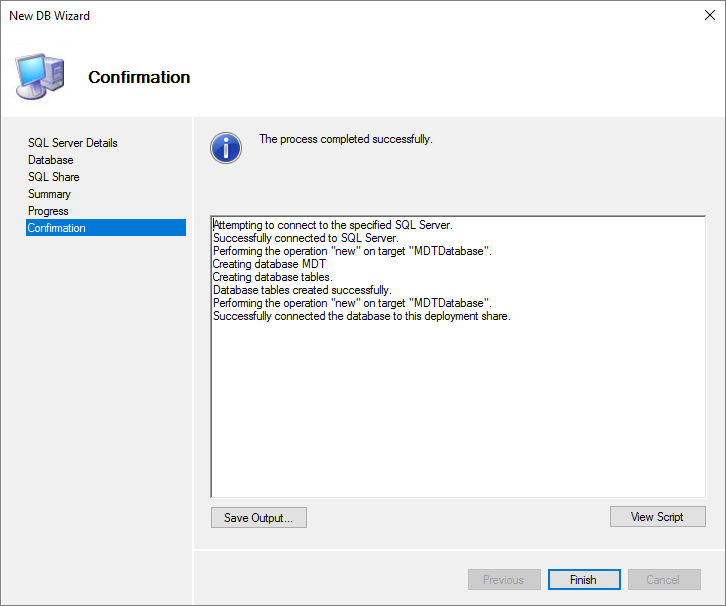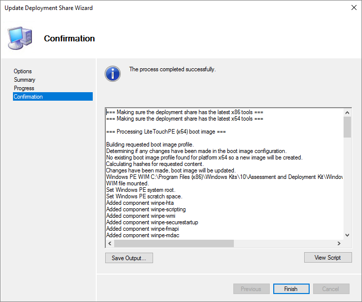 The deployment share is created successfully, Finish…