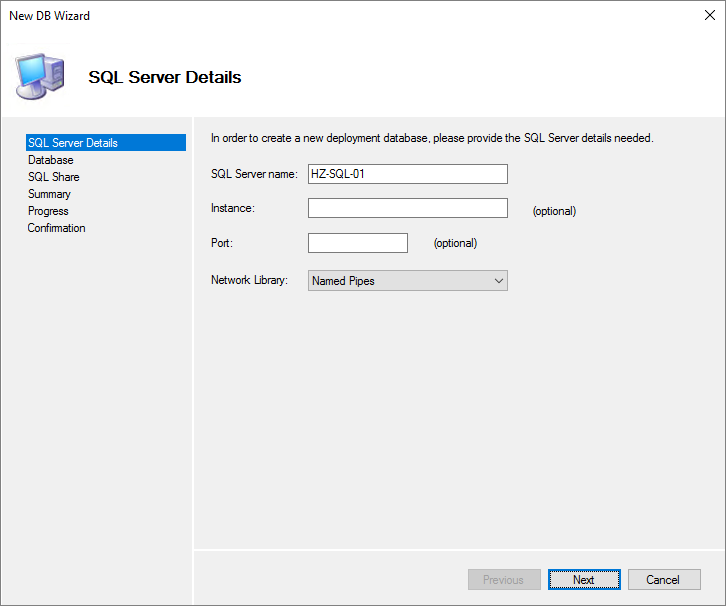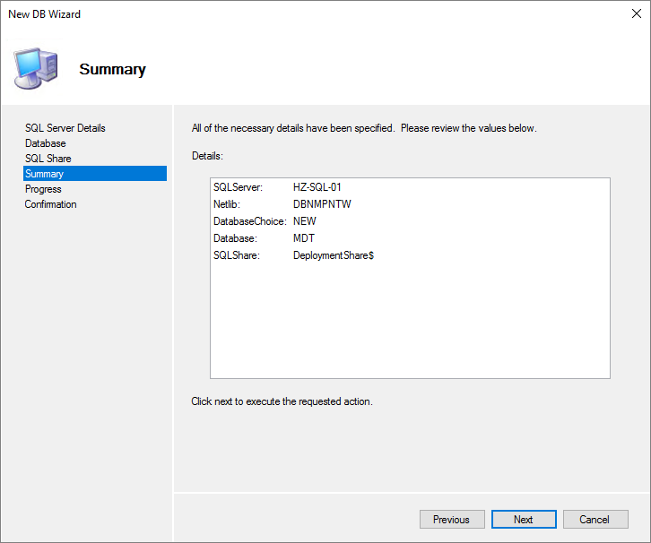 For this set up, I will be creating a new database with the very “imaginative” name, MDT, Next…