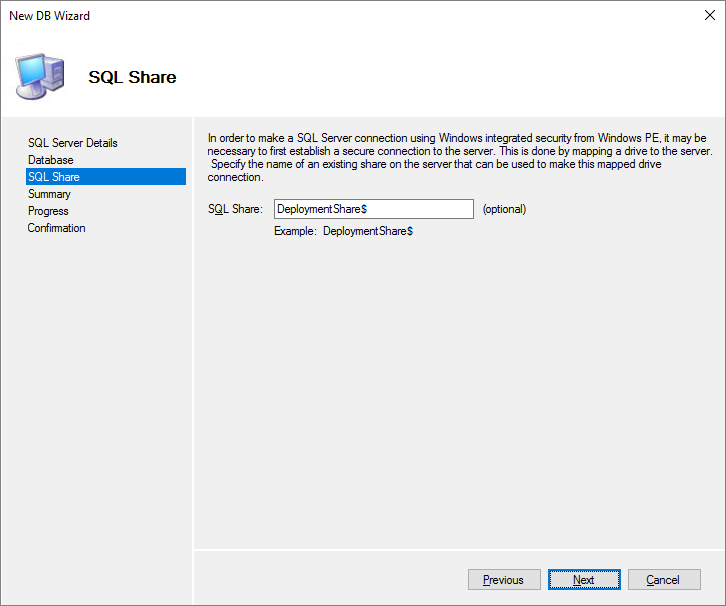 I will be mapping the SQL-share to the Deployment Share I created previously, Next…