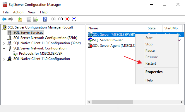 Once the adjustments above are done, I restart the SQL Server service