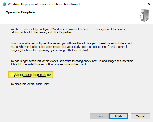Once the WDS configuration is done, I deselect “Add Images….”, Finish…