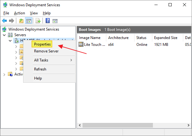 Open Properties on my WDS-server