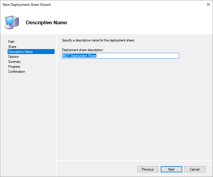 The Deployment Share even gets a description, Next…