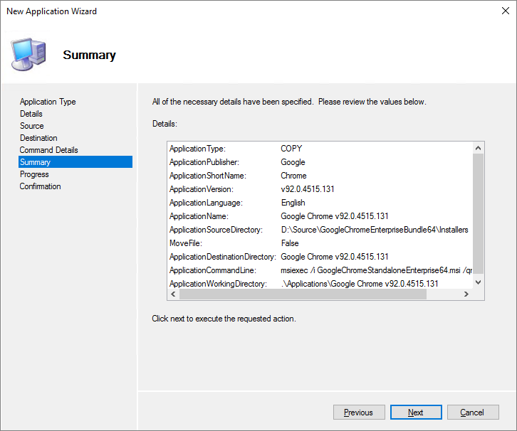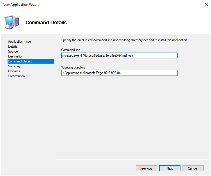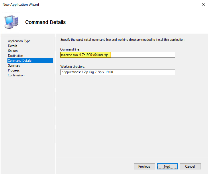 I repeat the process I used to add 7-Zip above, just a different command line. In Deployment Workbench, launch the “New Application” wizard…