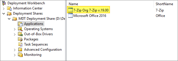 It’s now time to add some applications to my Task Sequence. I will be adding all my applications, except Microsoft Teams, as described with 7-Zip below.
