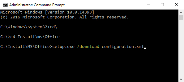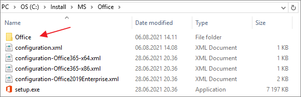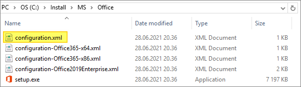 Once the files are extracted, I create a configuration.xml file to download MS Office 365 Pro Plus. There are plenty of resources on the web to help creating the configuration file, but as my setup is fairly simple, I just make a copy of the file supplied by Microsoft and edit it to my suit my needs.