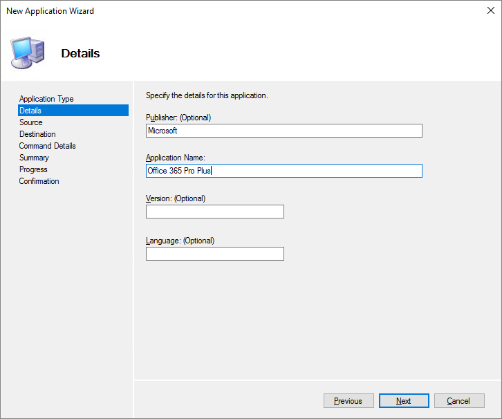 I can now add Office 365 Pro Plus as an application in the Deployment Workbench