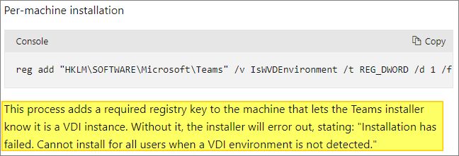reg add "HKLM\SOFTWARE\Microsoft\Teams" /v IsWVDEnvironment /t REG_DWORD /d 1 /f