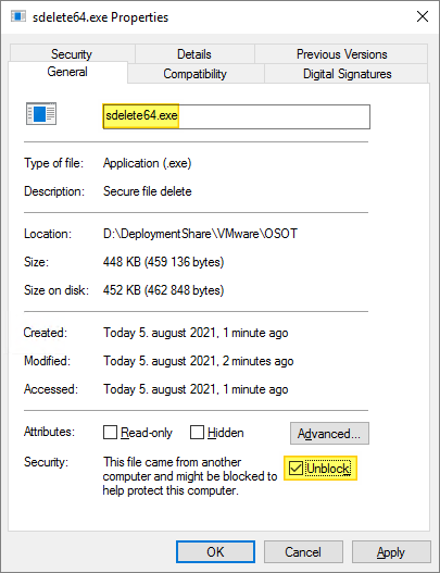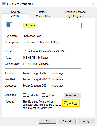 Next I add VMware OS optimization Tool, sdelete and LGPO executables to the OSOT sub-folder.