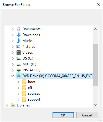 I click “Browse” and select the DVD Drive containing Windows 10 Build 2004, Next…