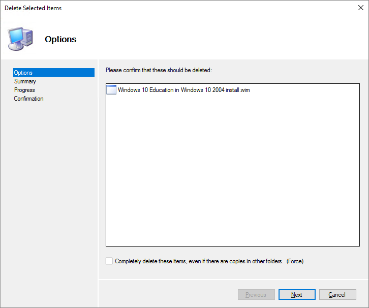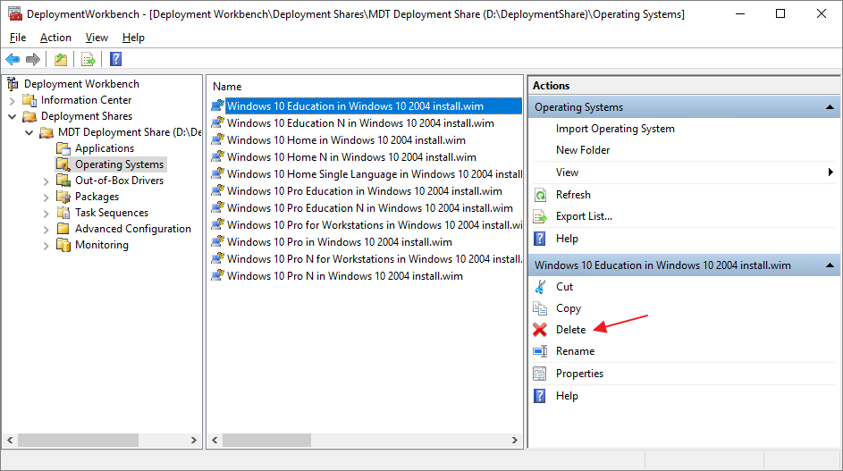 As the above process imports all available Windows 10 Build 2004 versions on the ISO, I will delete those version I won’t be using.