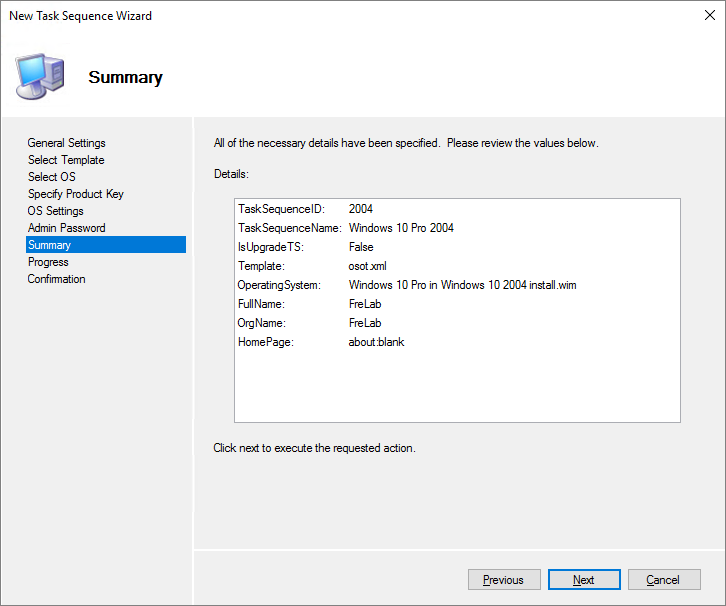Once the above components are in place, I will continue with creating and editing the task sequence. Finally I will do a quick test-run to see that all tasks are run without errors.