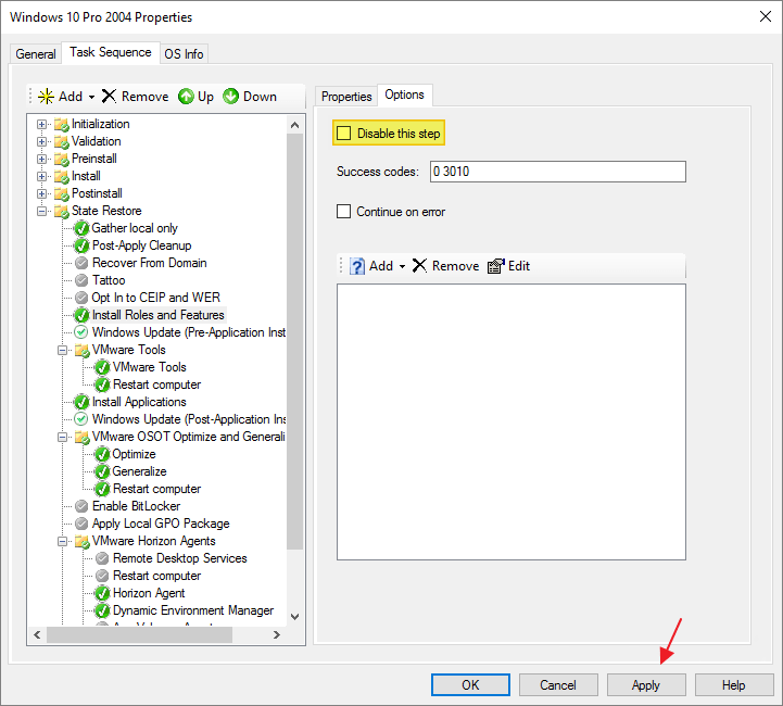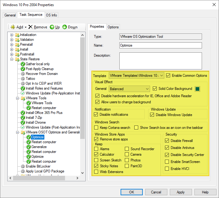 This concludes this session about configuring the task sequence with applications, operating systems etc. I can now wrap this series up by scripting the automation with VMware PowerCLI, posted here: VMware Horizon – Automating Template Creation & Maintenance