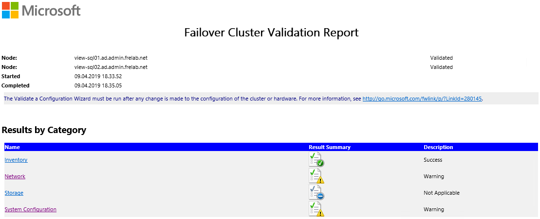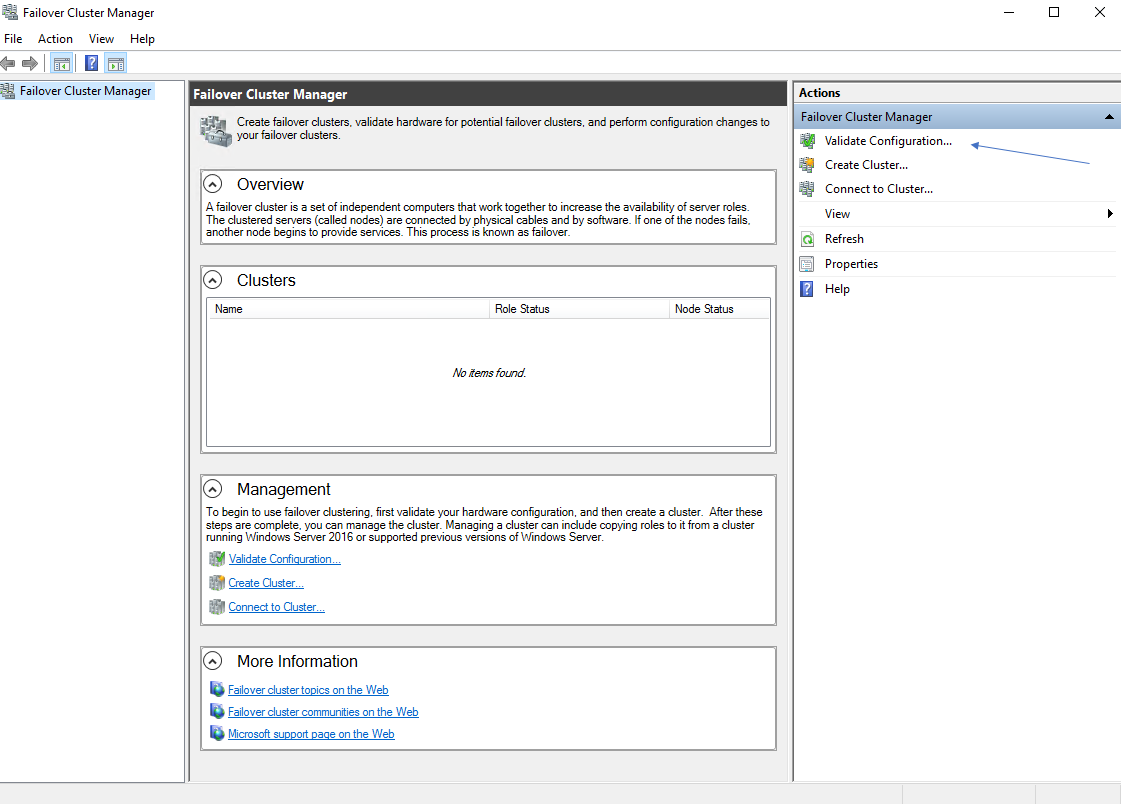 In “Failover Cluster Manager“, I click “Validate Configuration“