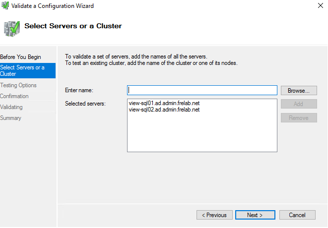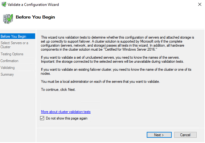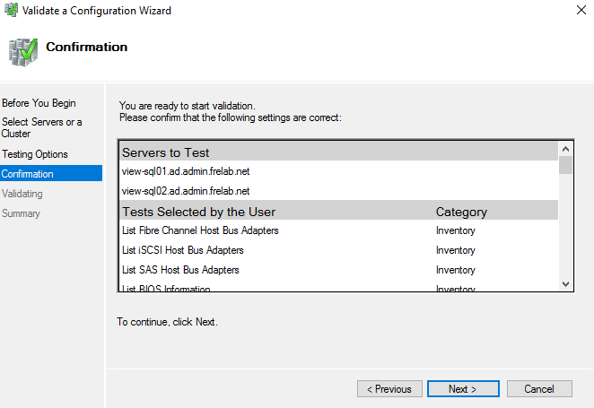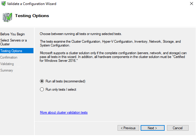 This opens the “Validate a Configuration” wizard, Next…